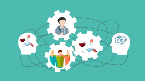 Hoe kunnen we de samenhang tussen deze problemen begrijpen? Overmatig gebruik van middelen draagt bij aan het ontstaan en verergeren van een psychisch probleem. En een psychisch probleem verhoogt de kans op middelenproblemen. Maar je kan niet eenvoudigweg stellen dat het ene probleem een gevolg is van het andere. De samenhang is complexer: de risicofactoren voor het ene probleem, dragen ook bij aan het ontstaan van andere problemen. En eenmaal beide problemen aanwezig zijn, gaan ze elkaar daarbovenop ook versterken. Zo ontstaat een kluwen van factoren die elkaar beïnvloeden en het geheel in stand houden en complexer maken. Ook de kenmerken van middelenproblemen en andere psychische problemen overlappen elkaar. Kortom, de problemen zijn sterk met elkaar verweven. In de online cursus wordt dit geïllustreerd met concrete voorbeelden.